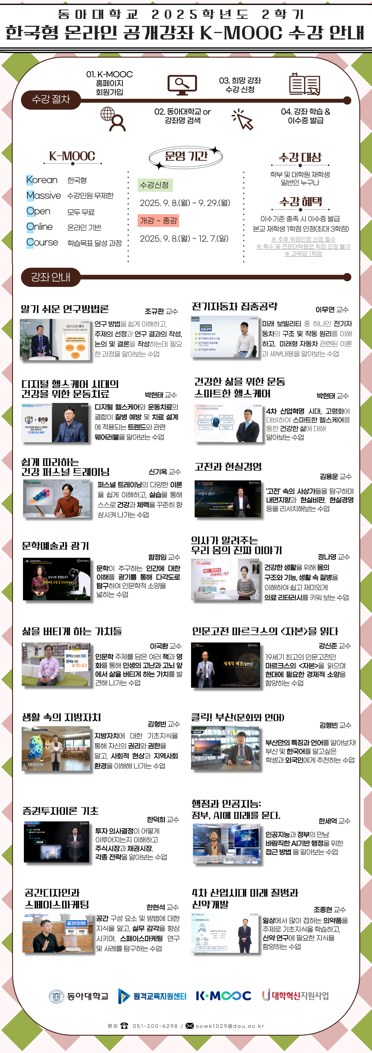 동아대학교 2025년 2학기 K-MOOC 강좌 수강 안내