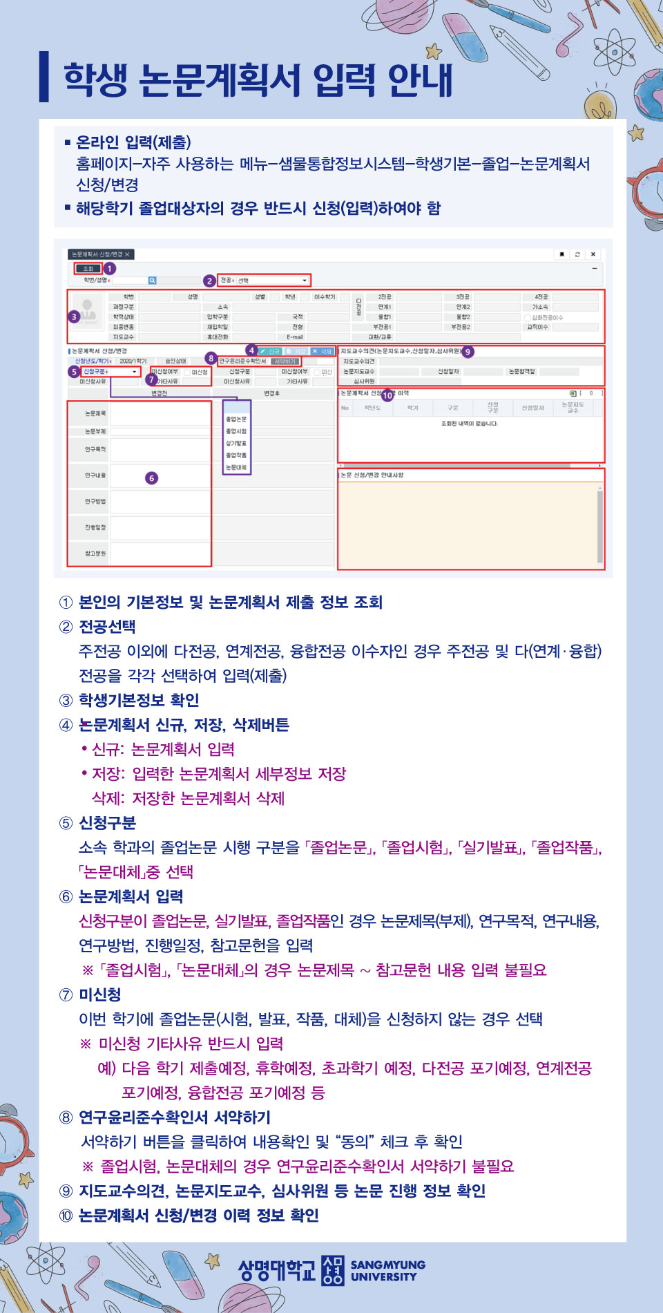 융합전공 포기예정 등")로 졸업논문계획서를 미신청할 경우에도 반드시 미신청 처리(입력)를 해주시기 바랍니다.